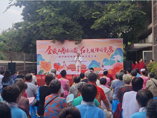 为丰富辖区党员群众节日文化生活,金宁新村社区党委、社区新时代文明实践站、银城物业,共同开展了“金秋九月话团圆 红色旋律颂党恩”迎中秋文艺汇演活动。演出在《欢聚一堂》开场舞中拉开序幕。辖区单位、社区党员、居民、志愿者自编自导自演的一首首赞歌、一支支舞蹈,展现了平安幸福的生活。活动中开展的党史、网络安全知识问答,掀起了一波又一波高潮。