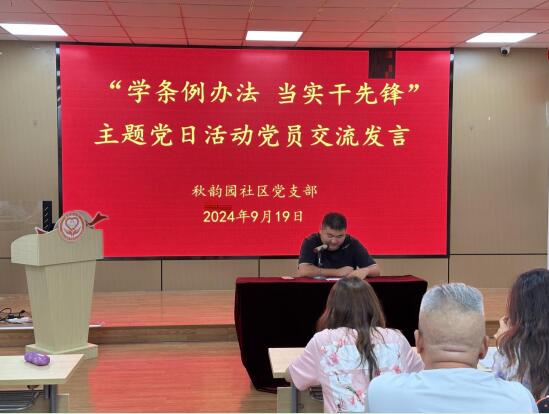 9月19日,南京市栖霞区迈皋桥街道秋韵园社区党支部开展“学条例办法 当实干先锋”主题党日活动,教育引导社区党员进一步树牢纪律规矩意识、增强党性责任担当,在推动发展、服务群众、参与治理中展现新形象、新作为。